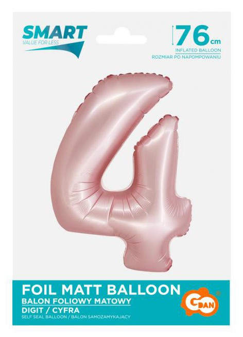 Rózsaszín 4-es Light Pink Mat szám fólia lufi 76 cm