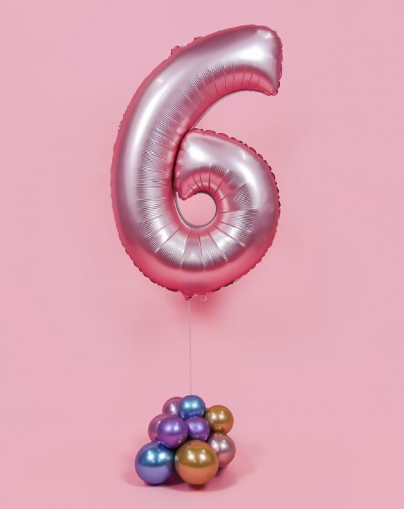 Rózsaszín 6-os Light Pink Mat szám fólia lufi 76 cm