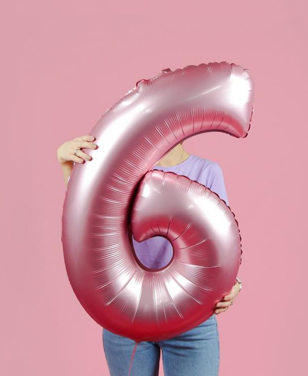Rózsaszín 6-os szám fólia lufi 76 cm