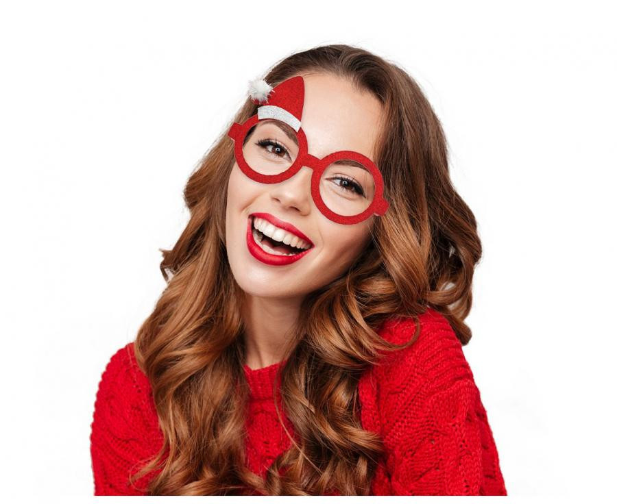 Karácsonyi Red szemüveg kicsi Mikulás sapkával rajta
