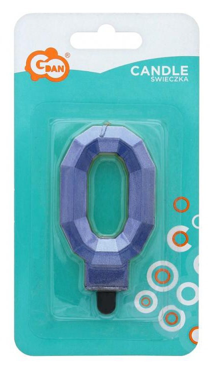 Kék 0-ás Diamond Metallic számgyertya, tortagyertya