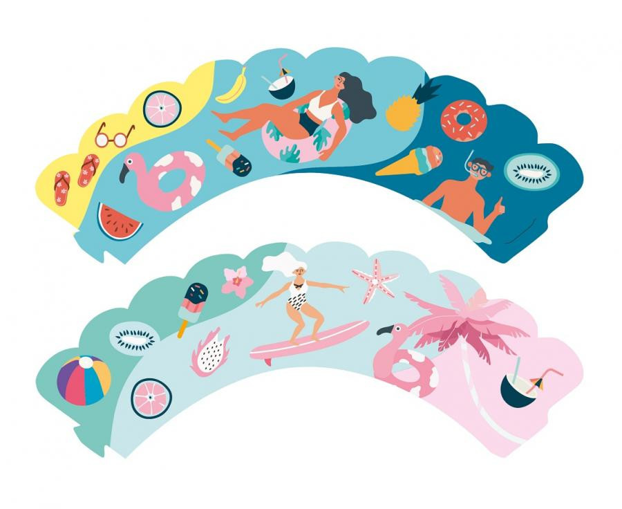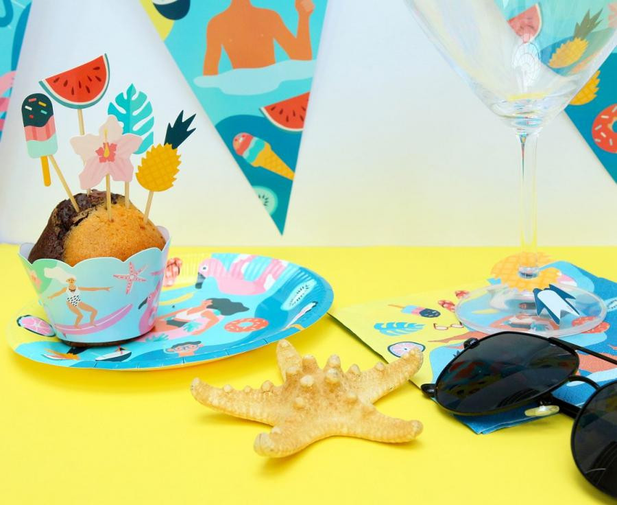 Nyár Surfing muffin dísz 6 db-os