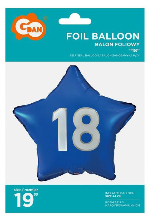 Happy Birthday Blue, Kék csillag 18 fólia lufi 44 cm