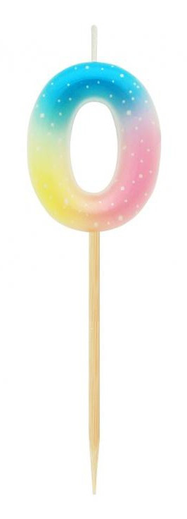 Színes mini 0-ás Pastel Ombre számgyertya, tortagyertya