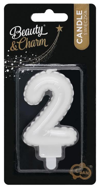 Fehér 2-es Pearly számgyertya, tortagyertya