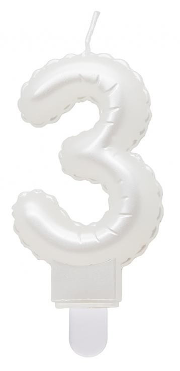 Fehér 3-as Pearly számgyertya, tortagyertya