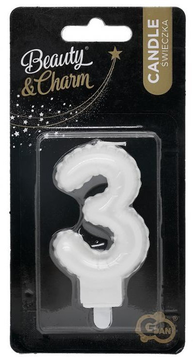 Fehér számgyertya, tortagyertya 3-as