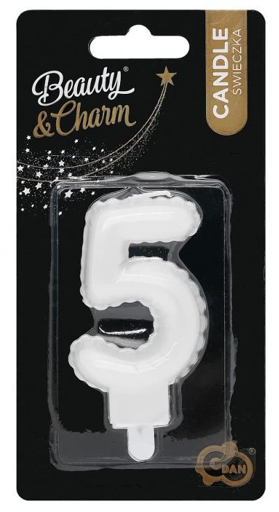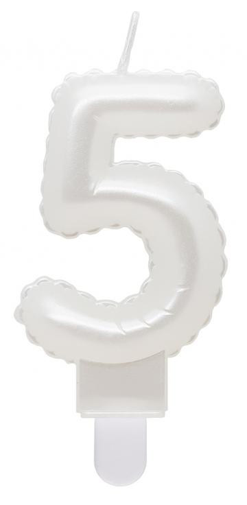Fehér 5-ös Pearly számgyertya, tortagyertya