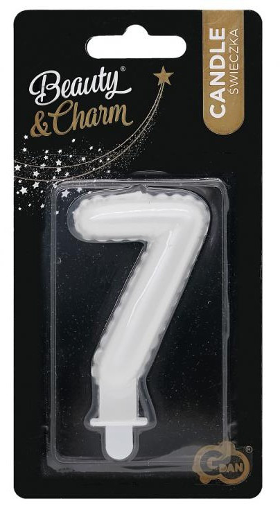 Fehér 7-es Pearly számgyertya, tortagyertya