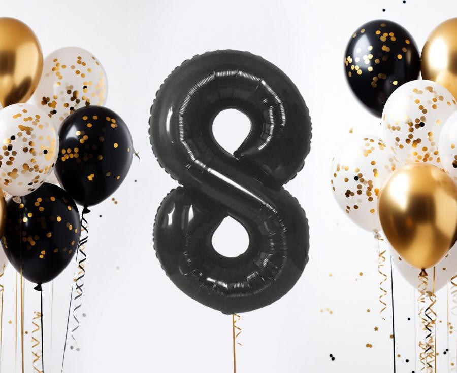 Fekete 8-as B&C Matt Black szám fólia lufi 85 cm