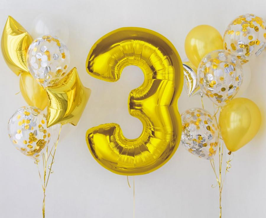 Arany 3-as szám fólia lufi 92 cm