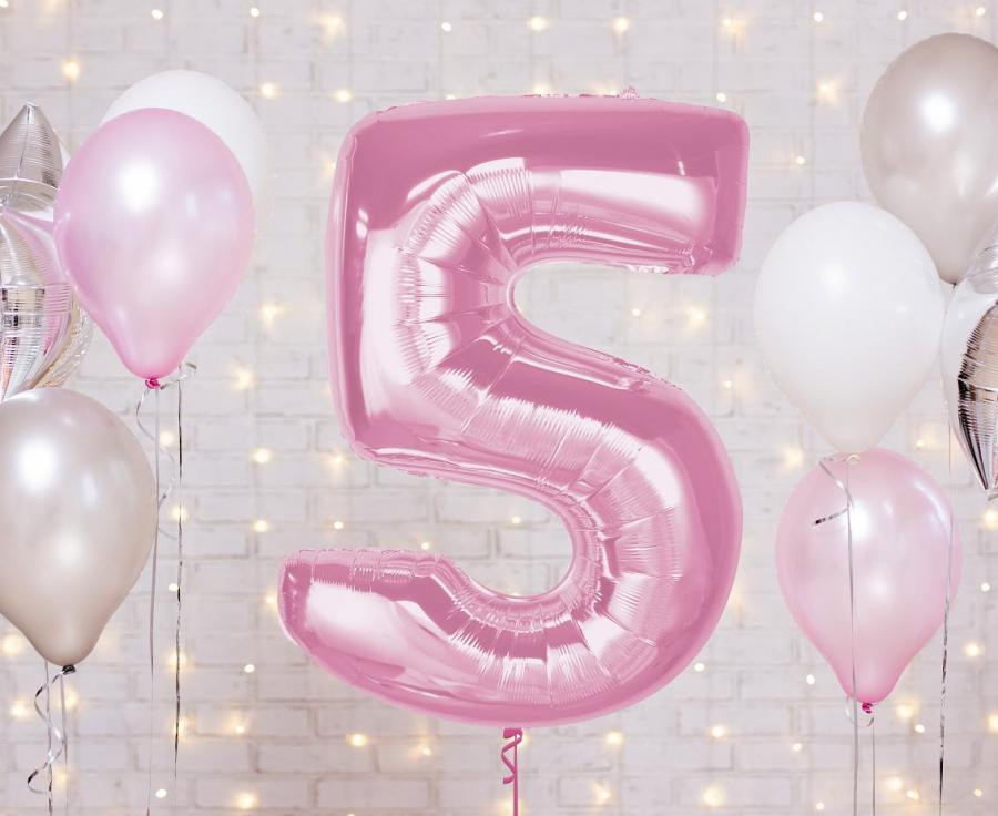 Rózsaszín 5-ös Light Pink szám fólia lufi 92 cm