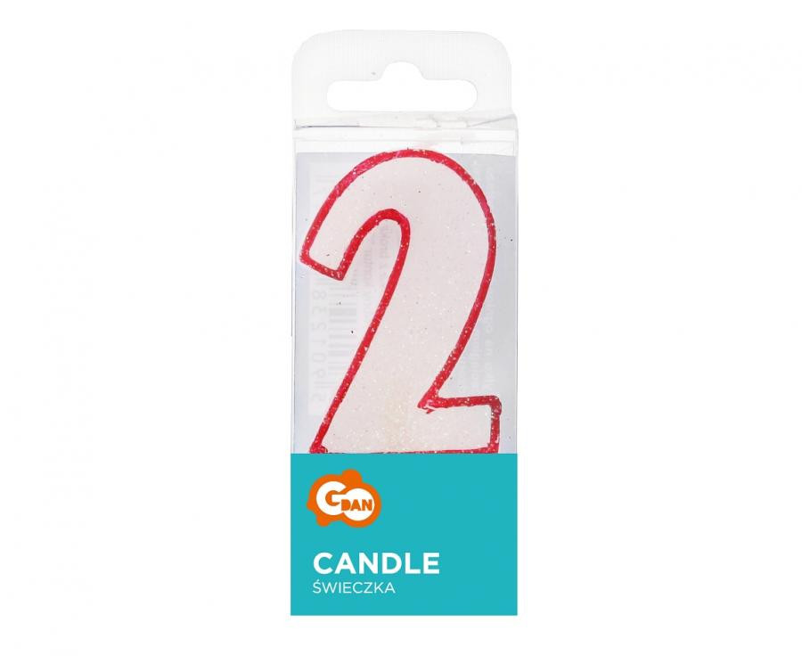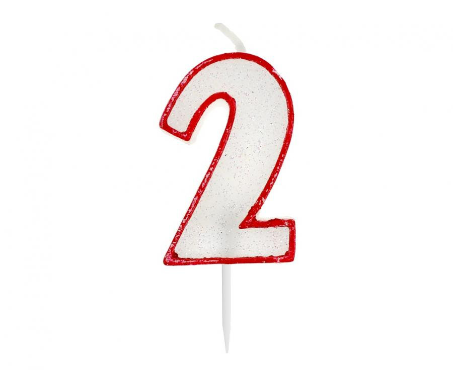 Piros körvonalas Red Outline Glitter 2-es számgyertya, tortagyertya