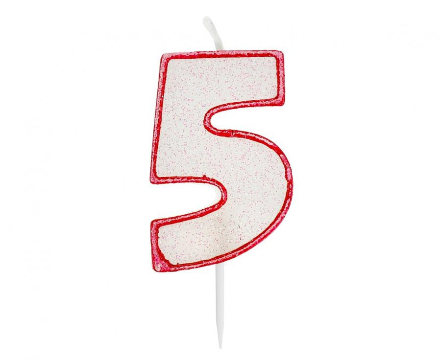 Piros körvonalas Red Outline Glitter 5-ös számgyertya, tortagyertya