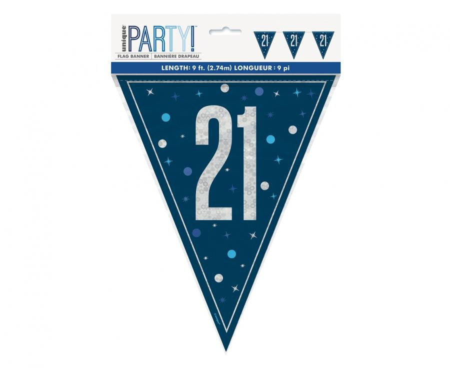 Happy Birthday 21 Blue zászlófüzér 274 cm