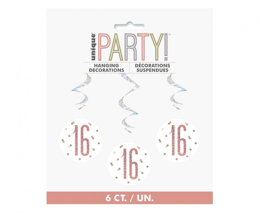 Happy Birthday 16 Holographic szalag dekoráció 6 db-os szett