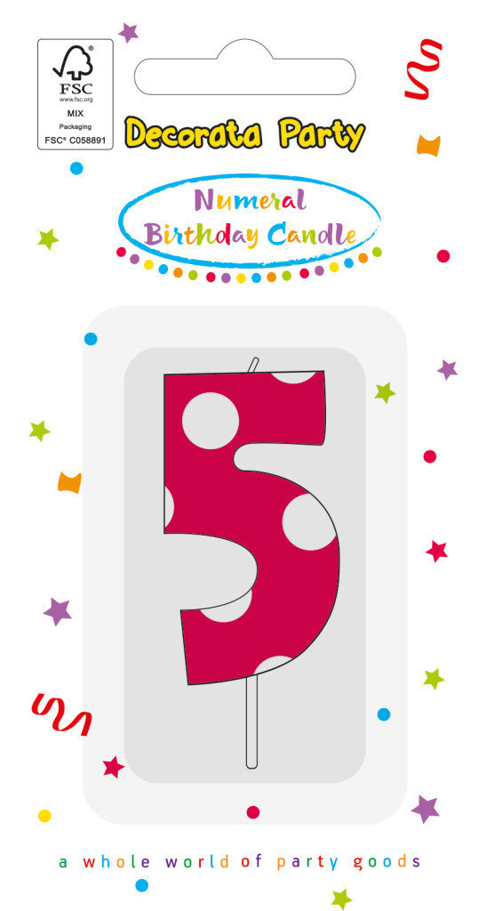 Színes Pink Pattern 5-ös tortagyertya, számgyertya