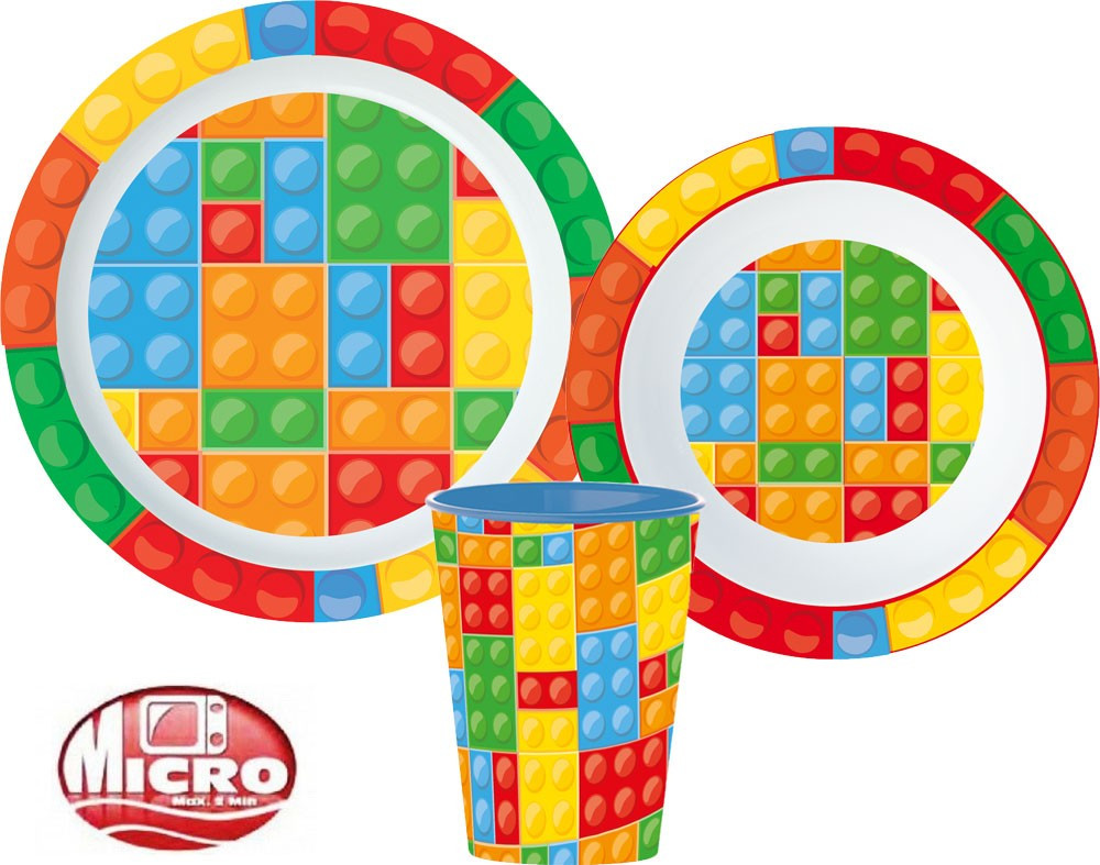 Lego mintázatú Bricks étkészlet, micro műanyag szett
