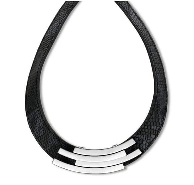 Victoria Ezüst színű fekete bőr nyaklánc