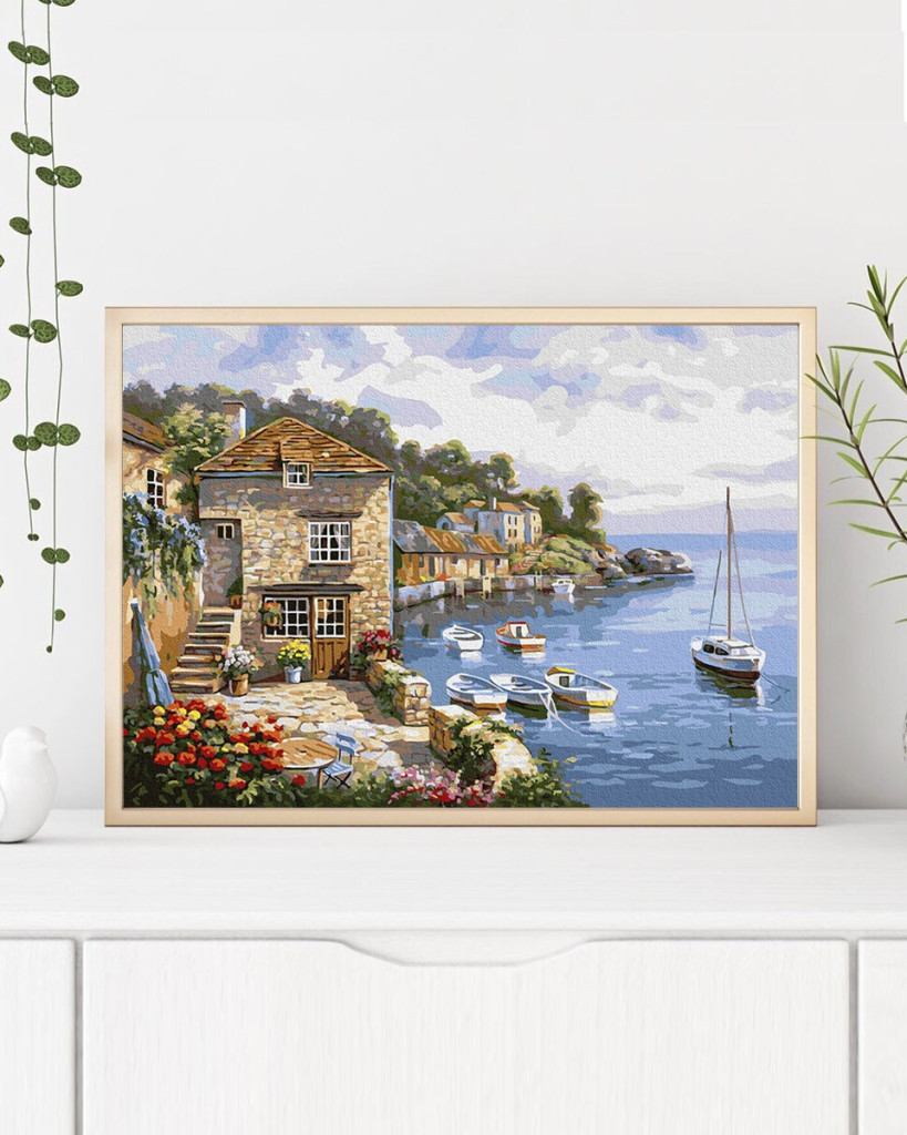 Malowanie po numerach Jezioro Como 40x50 Płótno + Farby + Pędzle