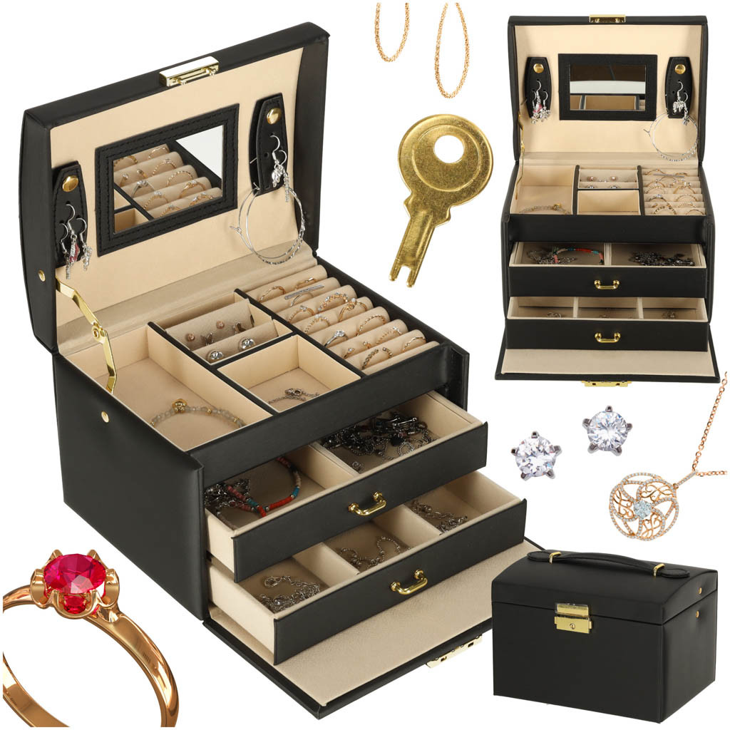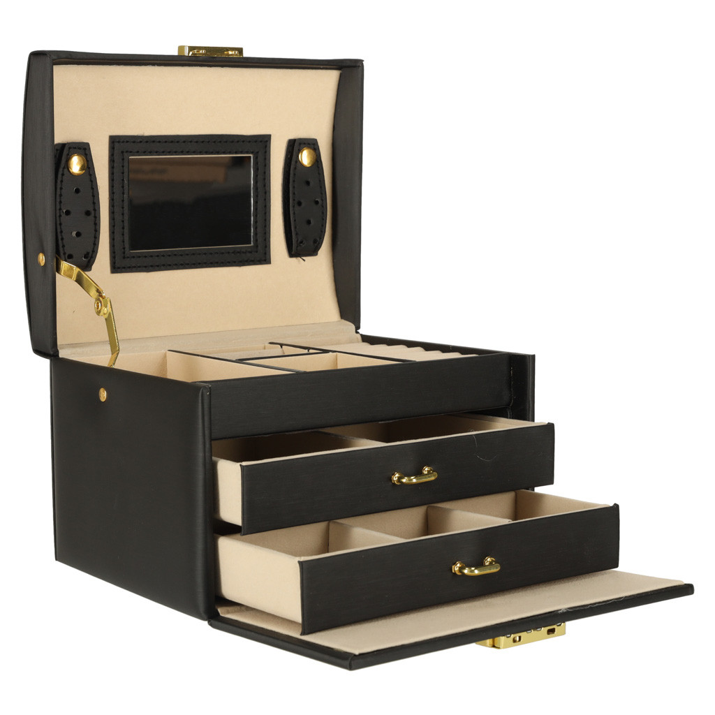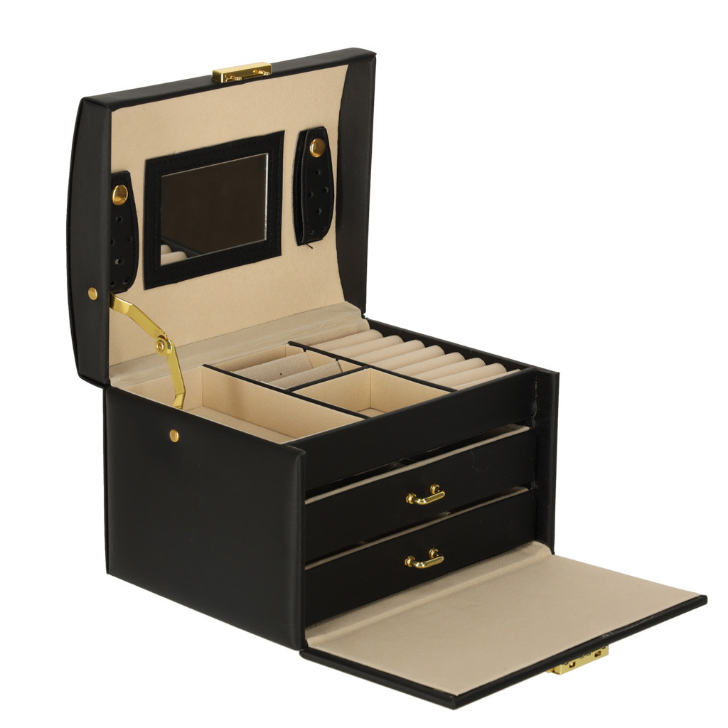 Ékszeres doboz fiókokkal fekete