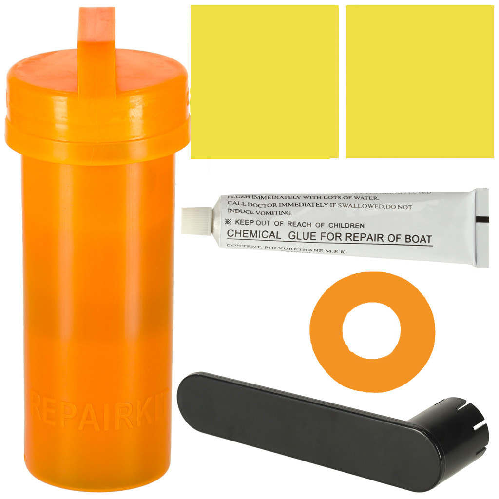 1x javítókészlet (3 folt: 2x zöld - 13x10,5 cm, 1x kék kerek - 8cm, ragasztó, supa kulcs).