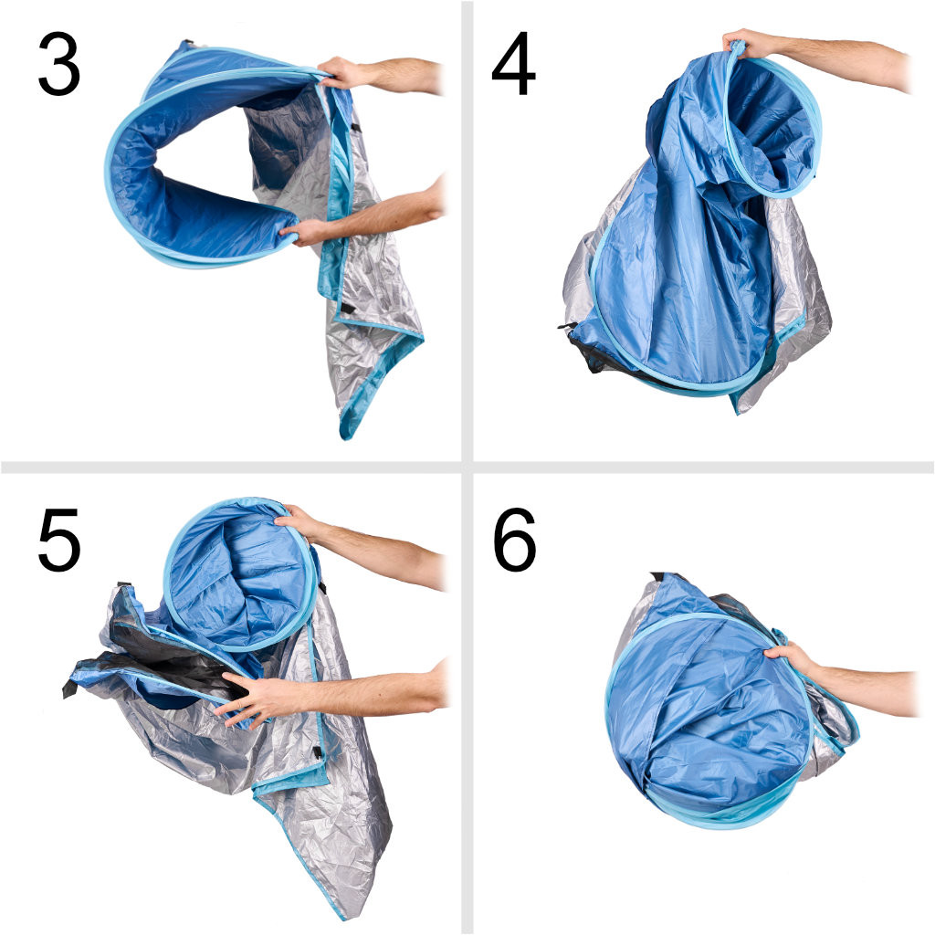 Hordozóhuzat fogantyúkkal - A sátorhoz egy kényelmes, fogantyúkkal ellátotthordozóhuzat tartozik a könnyű szállítás érdekében - elfér a csomagtartóban vagy a vállán, még akkor is, ha gyermekkel és strandtáskával sétál.