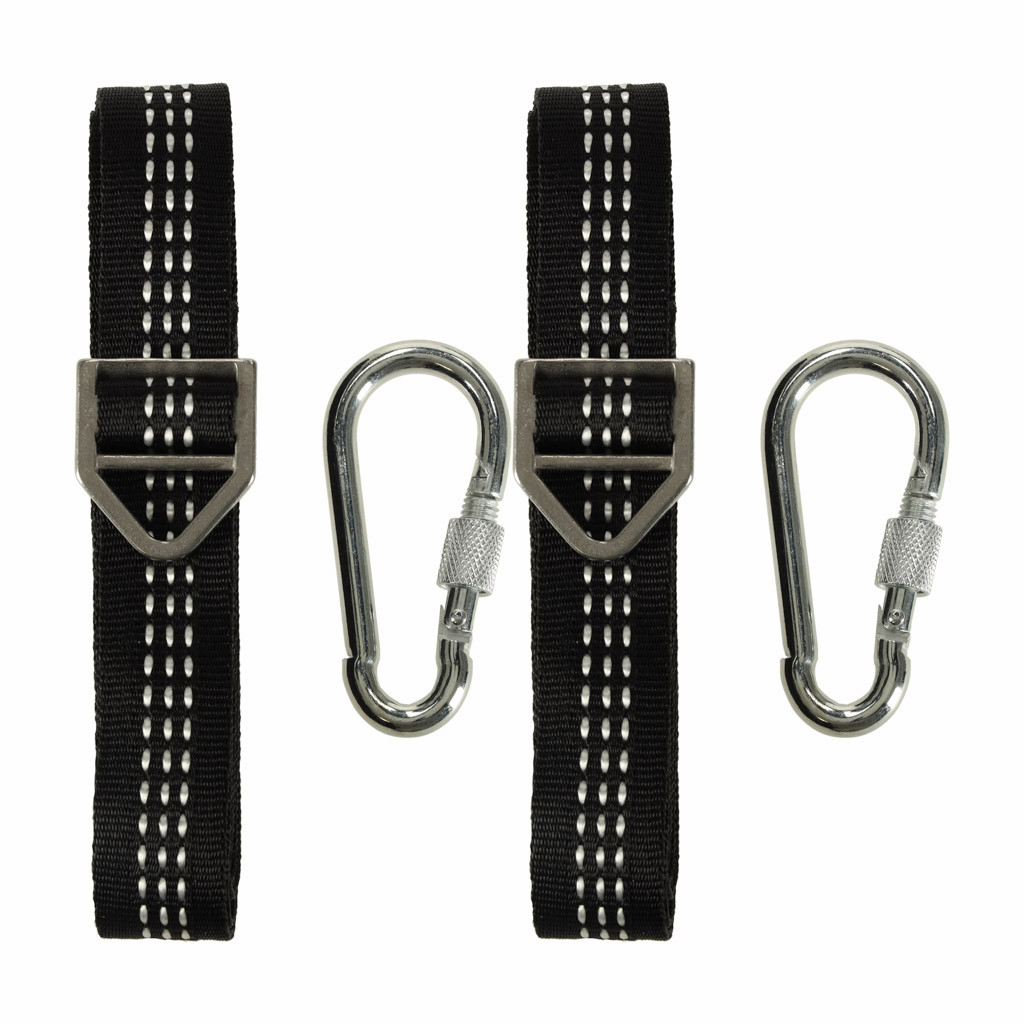 A készlet két rendkívül stabil, 2 méter hosszú hevedert és két robusztus karabinerhorgot tartalmaz, amelyek egyenként 300 kg maximális terhelhetőséggel rendelkeznek . Így biztos lehet benne, hogy a felfüggesztett ülés intenzív használat mellett is stabil és biztonságos marad.