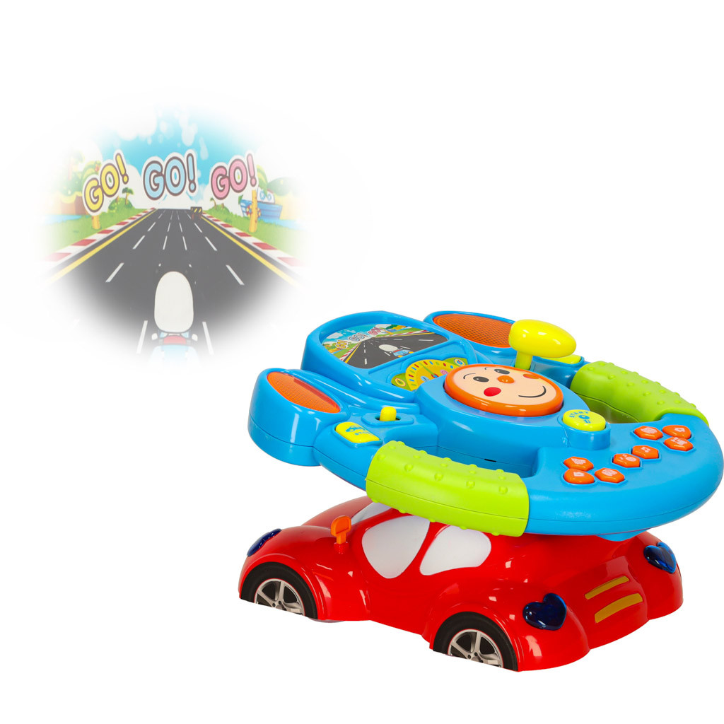 Interaktív gyermek kormánykerék játék szimulátor zenei hangok fények kivetítő