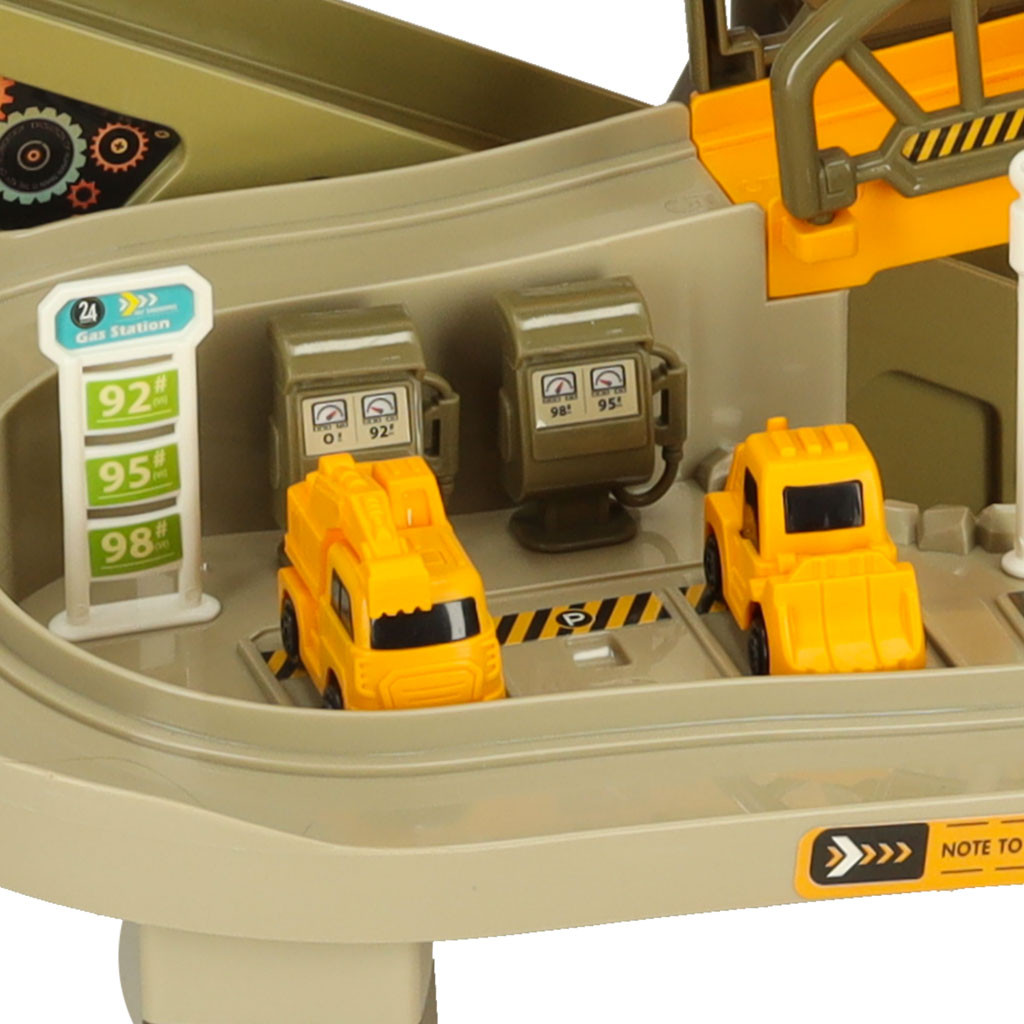 A készlet nemcsak az autókat, hanem más építőelemeket is tartalmaz, köztük egy darut. Ez lehetővé teszi, hogy a gyermek teljes mértékben átvegye az építésvezető szerepét, megtervezze a rakományok szállítását és ellenőrizze a munka előrehaladását.