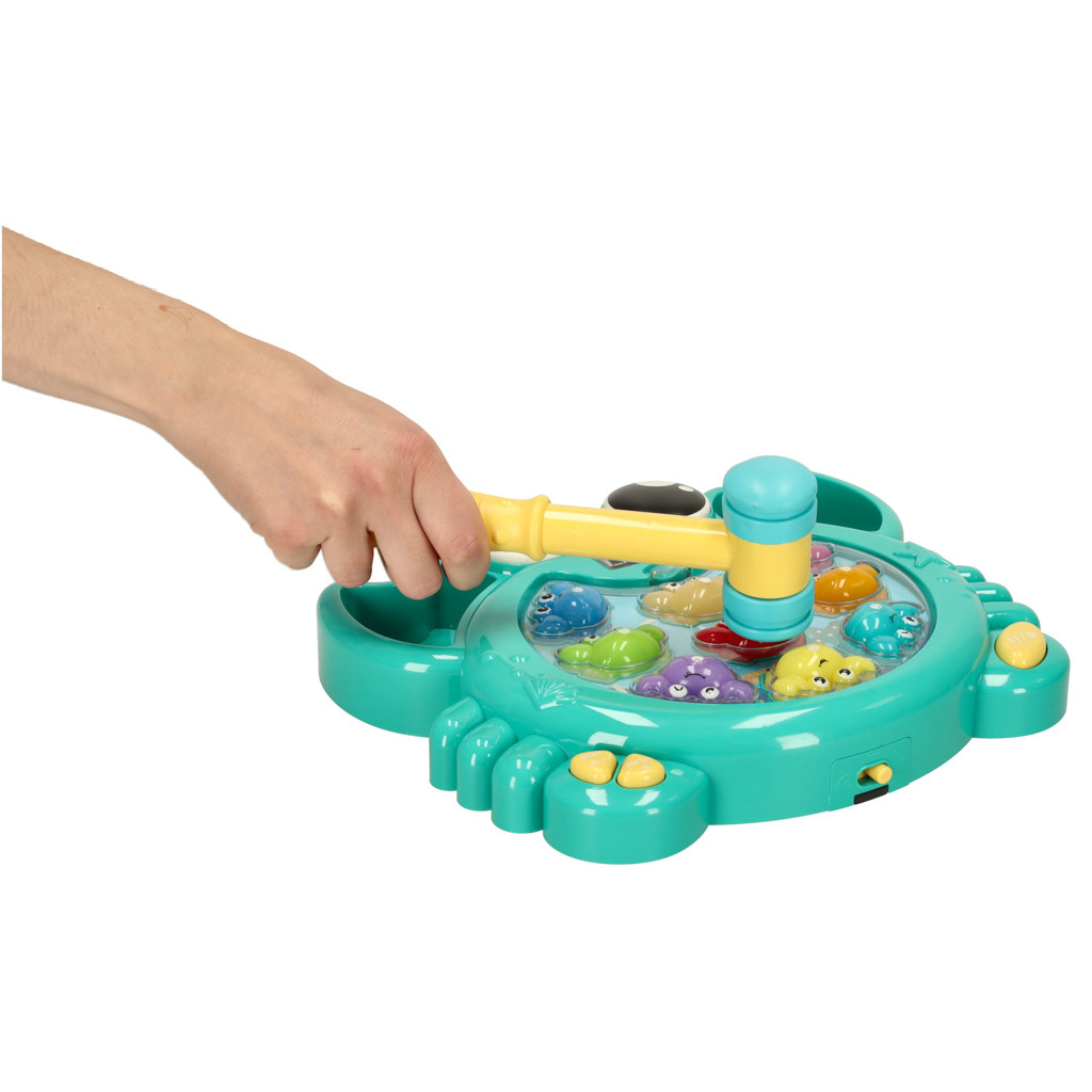 Két játék közül választhat: a rákok kalapáccsal történő ütögetése és a horgászbot segítségével történő fogása. Mindkét tevékenység elősegíti a kézügyesség, a finommotorika és a szem-kéz koordináció fejlődését, amelyek kulcsfontosságúak a kisgyermek első éveiben. Ezeken a tevékenységeken keresztül a gyermek precíz mozdulatokat gyakorol és csiszolja készségeit.