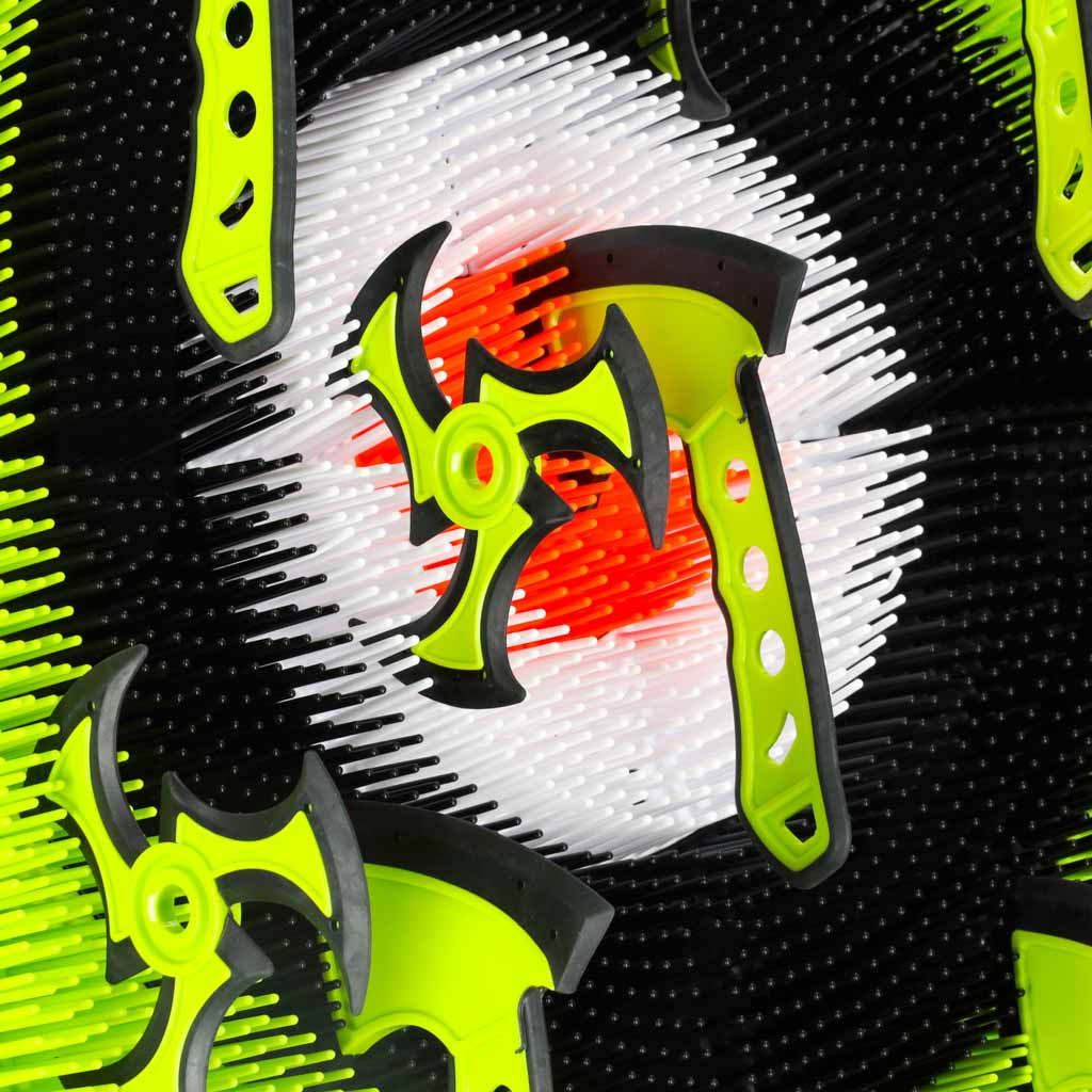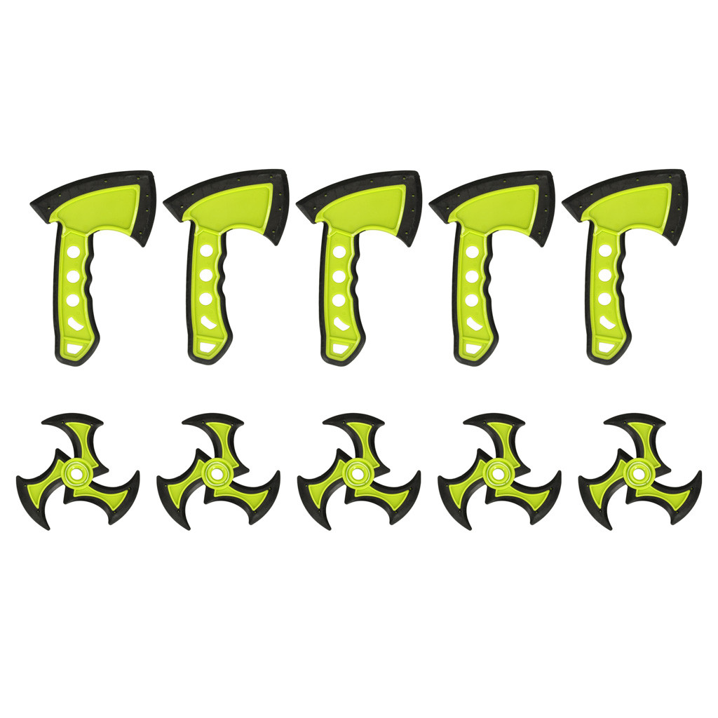 A műanyag balták és shurikenek puha szilikonnal vannak bevonva, így teljesen biztonságos a dobásuk. Minden tartozékot gondosan megmunkáltak a hiteles megjelenés és az izgalmas szórakozás érdekében. A fogantyúkkal ellátott, stabil műanyag állvány lehetővé teszi a kiegészítők könnyű tárolását és a készlet gyors előkészítését a következő gyakorlásra. Így gyermeke bármikor csiszolhatja készségeit.