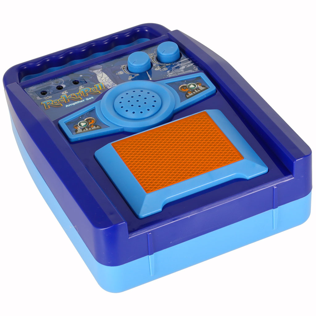 Elektromos gitár kiegészítőkkel a tökéletes játék a nagyszínpadról álmodó kis zenész számára. A készlet tartalmaz egy gitárt, egy erősítőt és egy mikrofont egy állítható állványon.