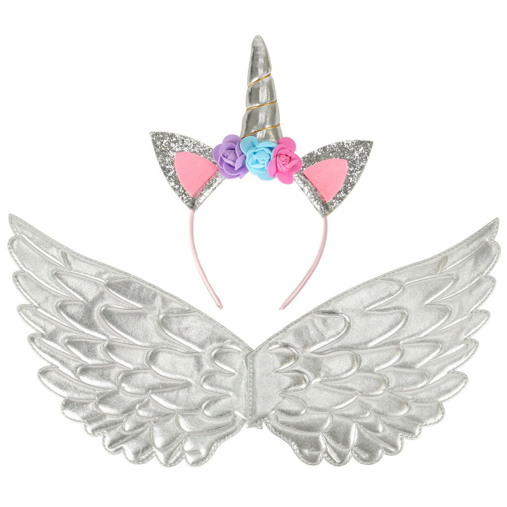 Egyszarvú jelmez szoknya fejpánt ezüst