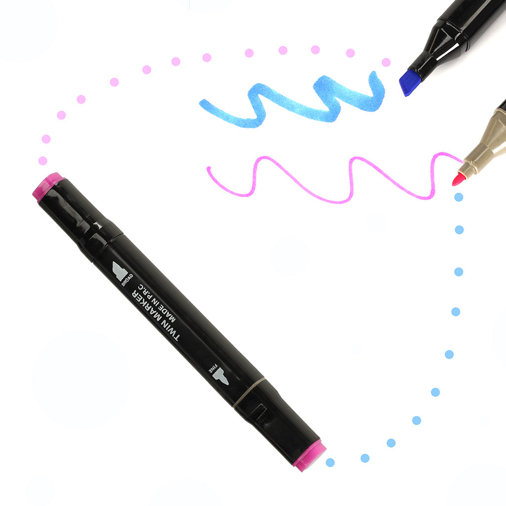 Minden markernek két hegye van, egy széles hegy- ideális nagyobb területek festéséhez, és egy vékony hegy - vékony és pontosabb vonalak készítéséhez, hogy részleteket adjon hozzá. A megfelelő hegy biztosítja, hogy a rajz részletgazdag vagy jobban fedett legyen.