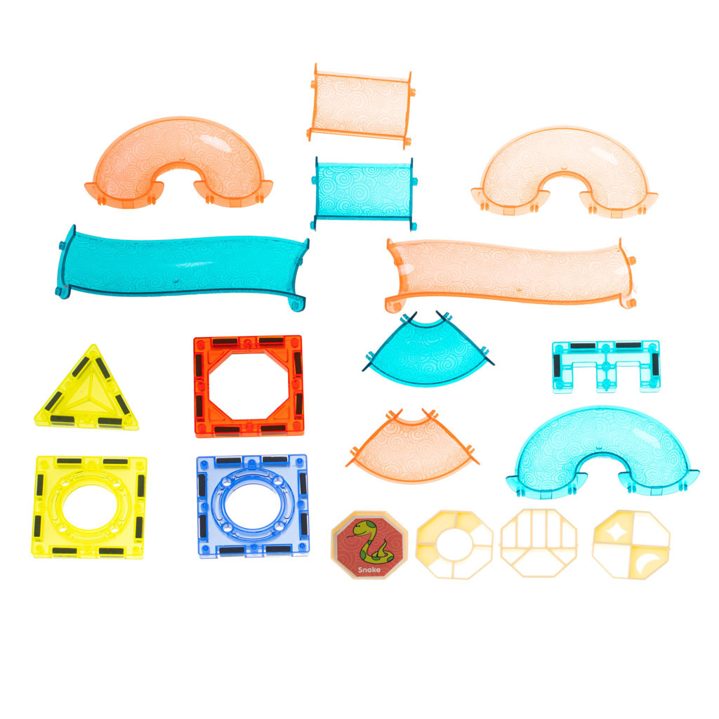 Minden egyes blokk beépített mágnesek segítségével csatlakozik egymáshoz, így még a legötletesebb szerkezetek építése is tiszta szórakozás.
