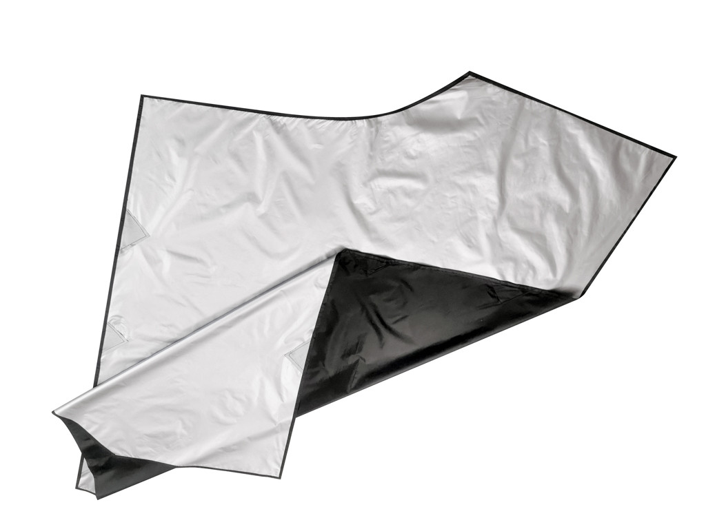 Teljes egészében vastag, fényáteresztő poliészterből készült. Egyik oldalán ezüst hőszigetelő réteggel rendelkezik.