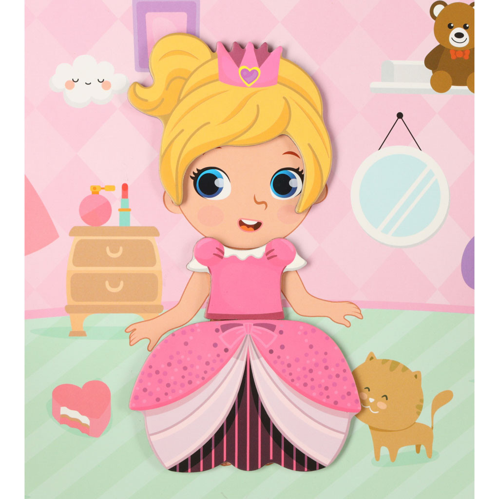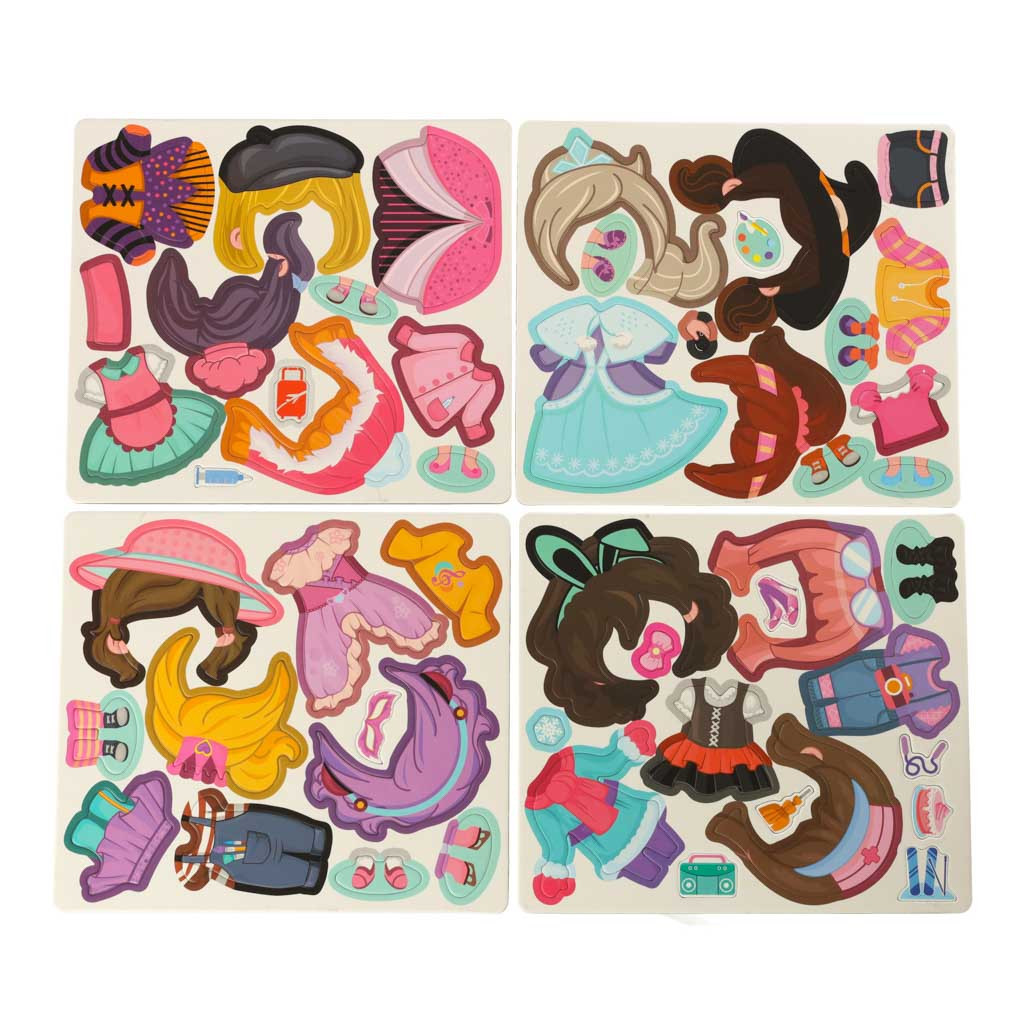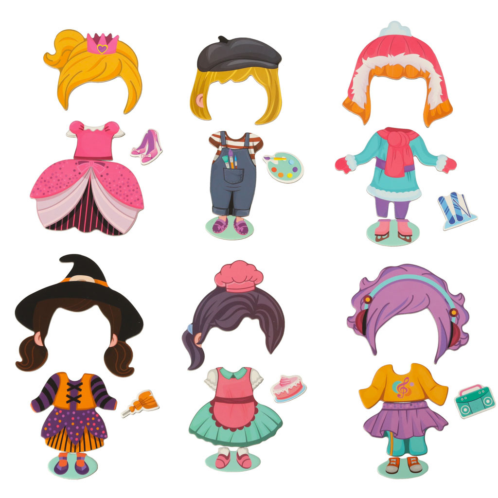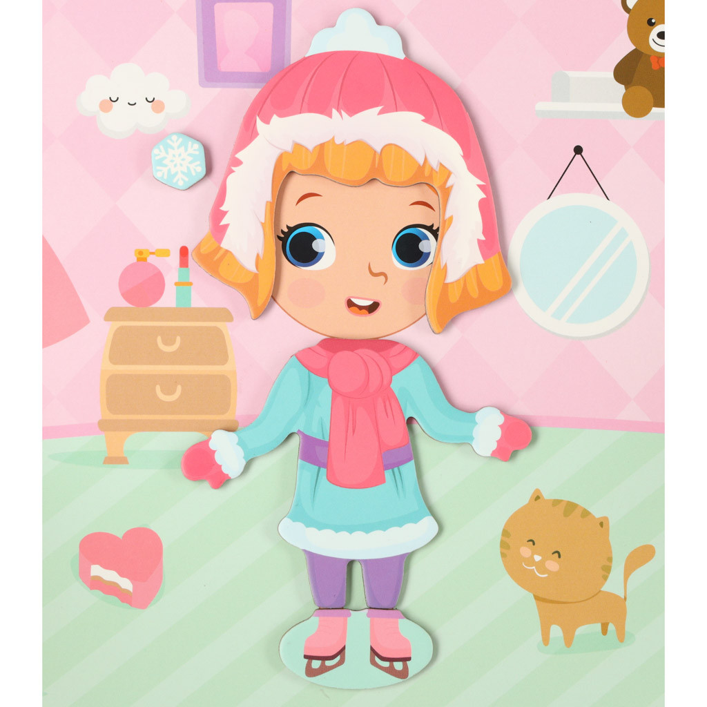 Hagyd, hogy gyermeked stylist legyen! A mágneses rejtvények különböző ruhákat, frizurákat és cipőket mutatnak be! A játék célja, hogy felöltöztesd a mágneses táblán látható kislányt!