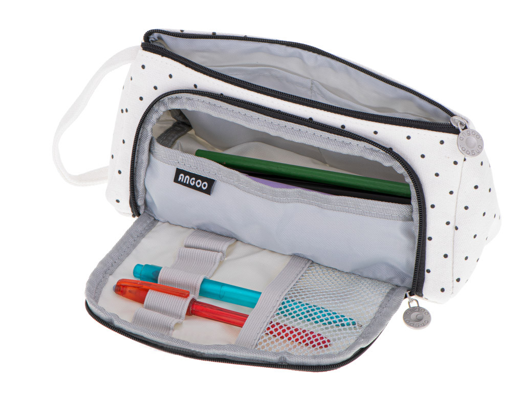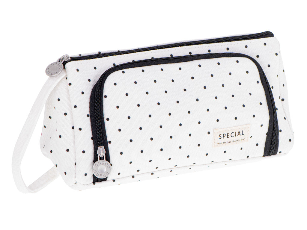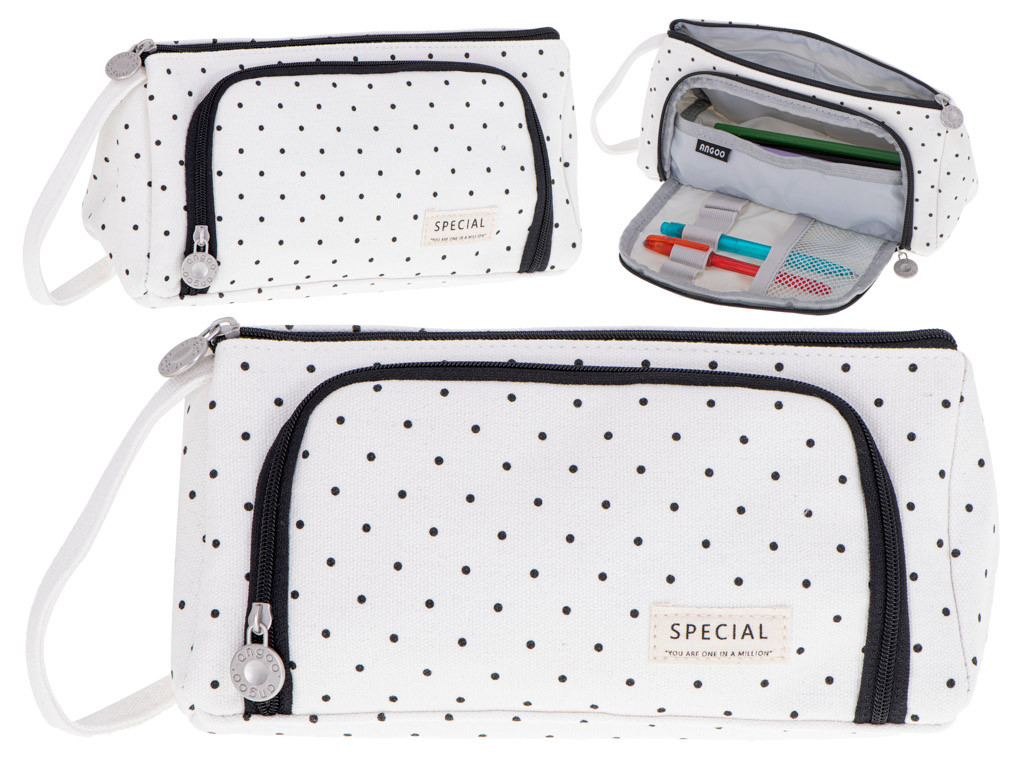 ISKOLAI CERUZADOBOZ DUPLA HIÚSÁG TOK FEHÉR PÖTTYÖK