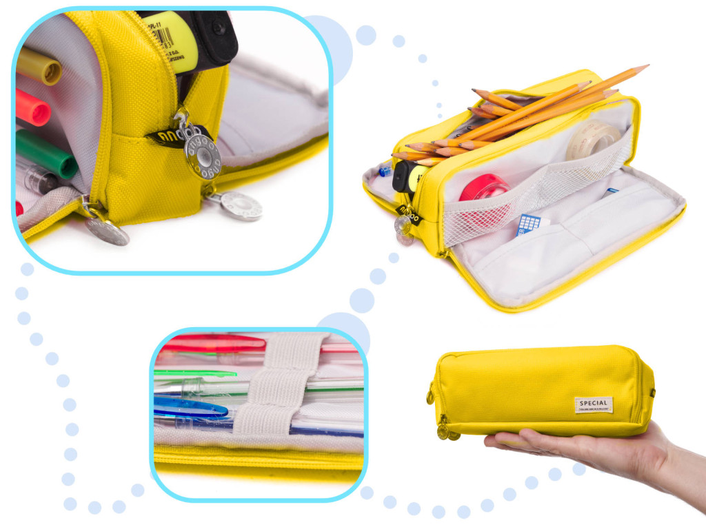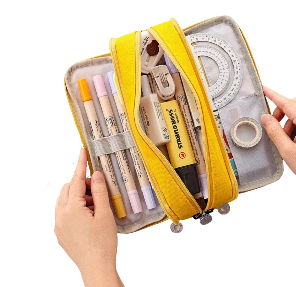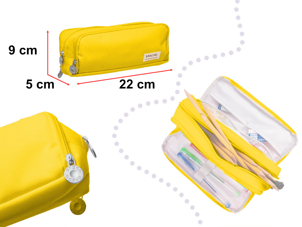 Iskolai tolltartó hármas tasakos hiúsági tok sárga