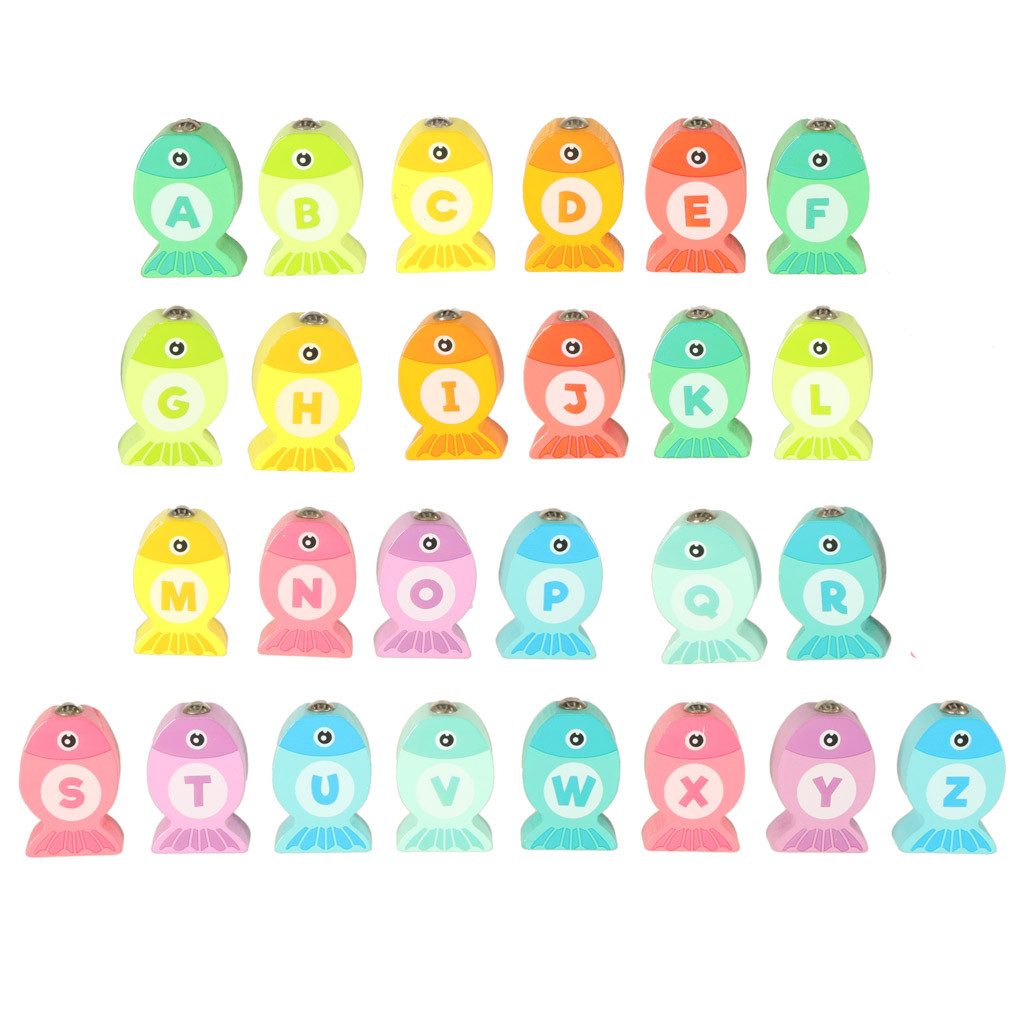 Mindegyik halon az ábécé egy-egy betűje van. Párosítsd az egyes halakat a megfelelő lyukhoz.