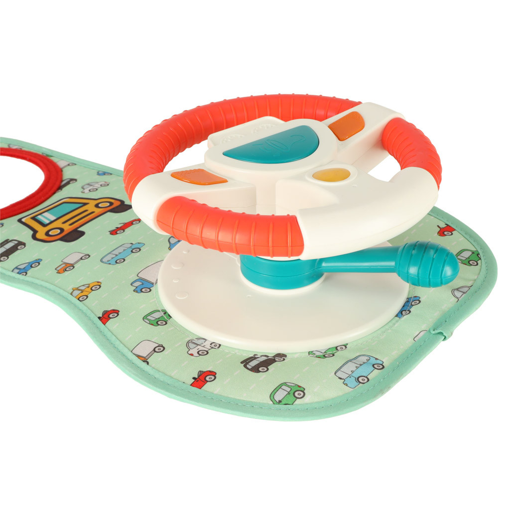Egy 4 gombos kormánykerékből és egy érzékszervi vezérlésből, valamint egy műanyag biztonsági tükörből áll. Az elemeket egy merev párnára helyezik, amelyet kellemes, játékautók motívumát ábrázoló szövet borít.