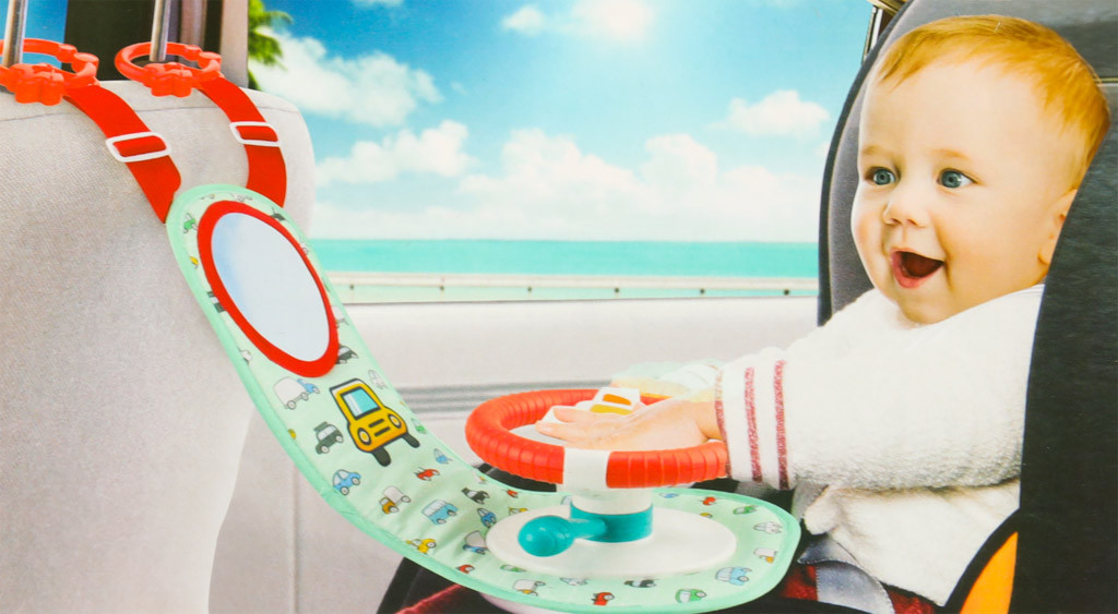 Az interaktív kormánykerék egyfajta manipulatív tábla, amely lefoglalja a kis kezeket az utazás során.
