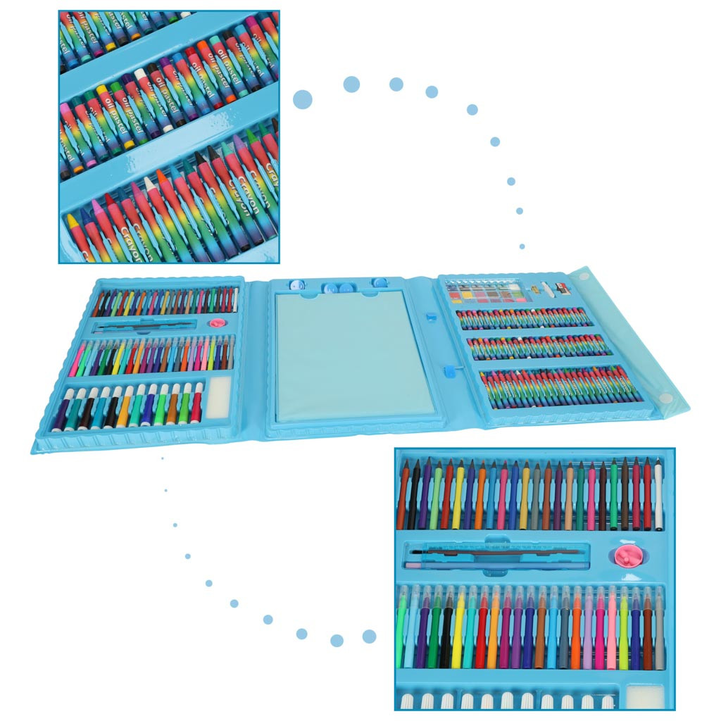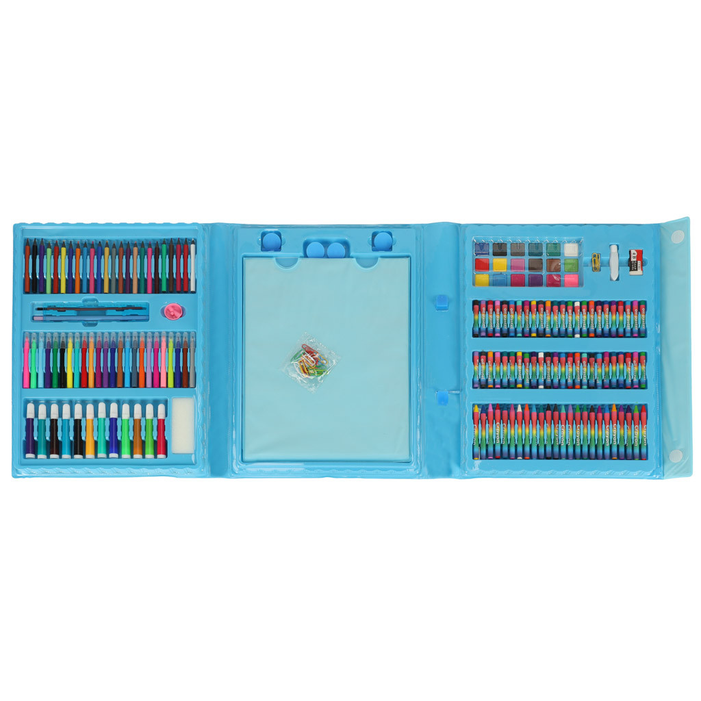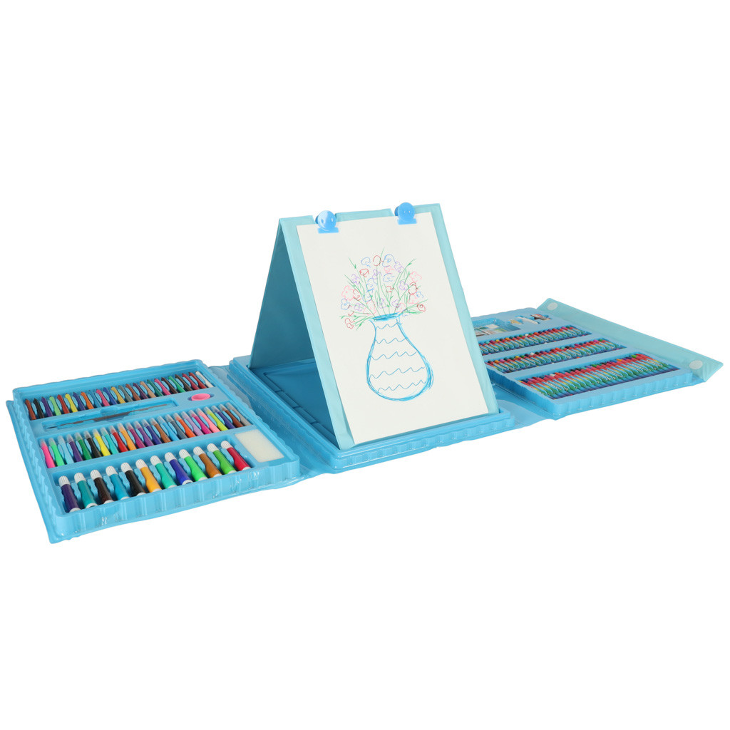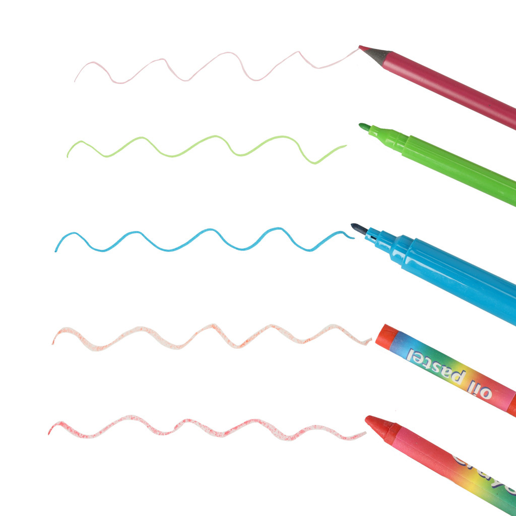 Művészeti készletünkben mindenki számára van valami - színezőtollak, rajzceruzák és festékek a festéshez. Mindezt telített színekben, amelyek papíron is jól mutatnak. Mindez egy praktikus tokba zárva, amely könnyen összecsukható, lezárható és magával vihető - iskolába, óvodába, művészeti órákra vagy egy kirándulásra, ahol a szabadban festhet!