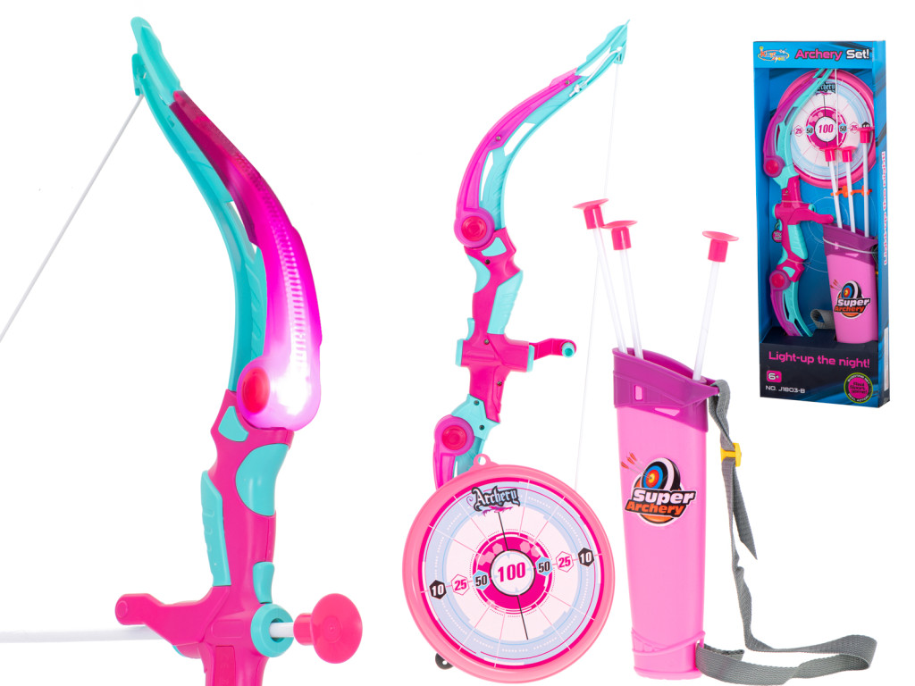 LÖVÉSZKÉSZLET - ÍJ, NYILAK ÉS CÉLTÁBLA RÓZSASZÍNBEN