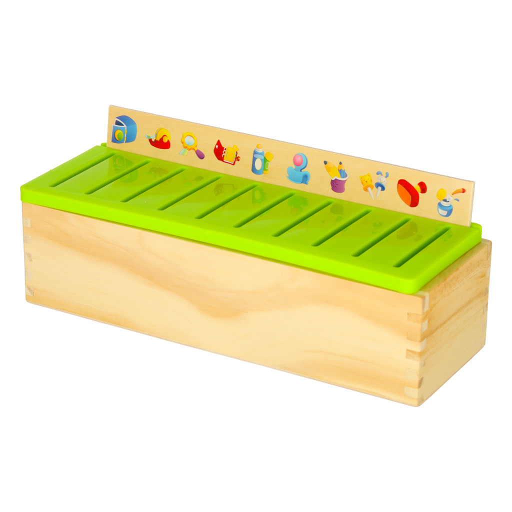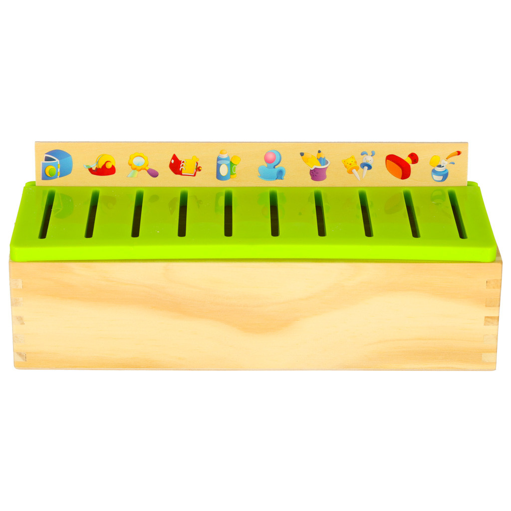 A játék lényege, hogy ugyanazt a képet kell behelyezni, mint ami a lyuk fölötti nagy fatáblán van.