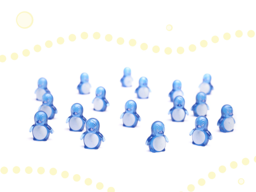 A kis pingvin méretei: 2.5cm x 1.5cm