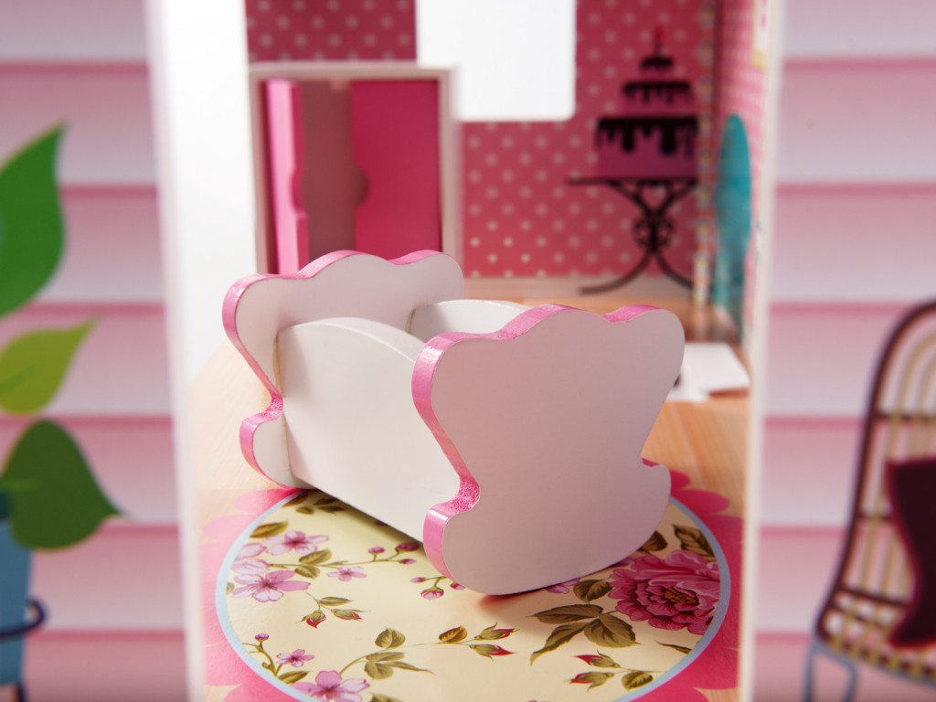 - SZÁMOS TARTOZÉK - a fából készült bútorok szervetlen lehetőségeket adnak a játékra és az egyes helyiségek elrendezésére.