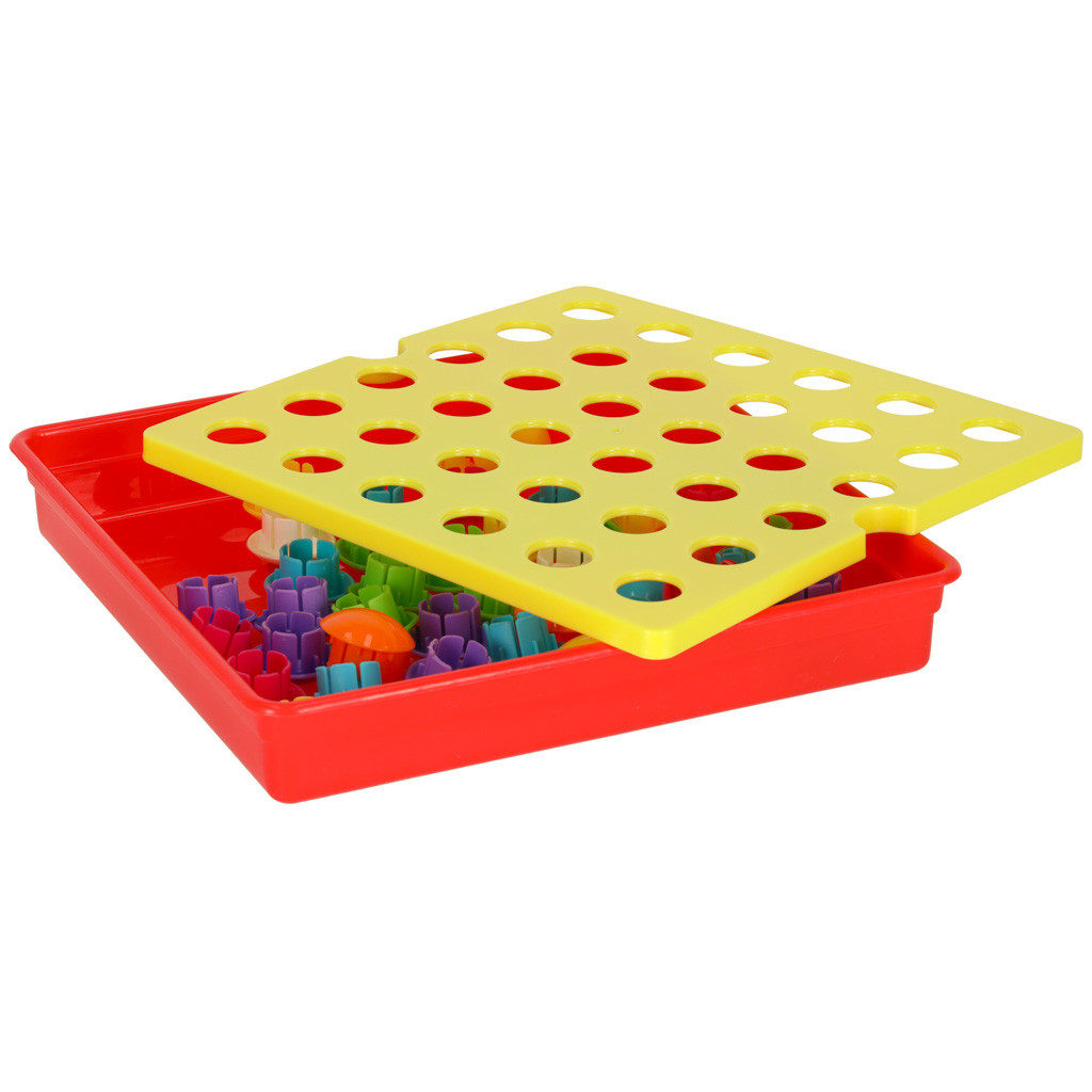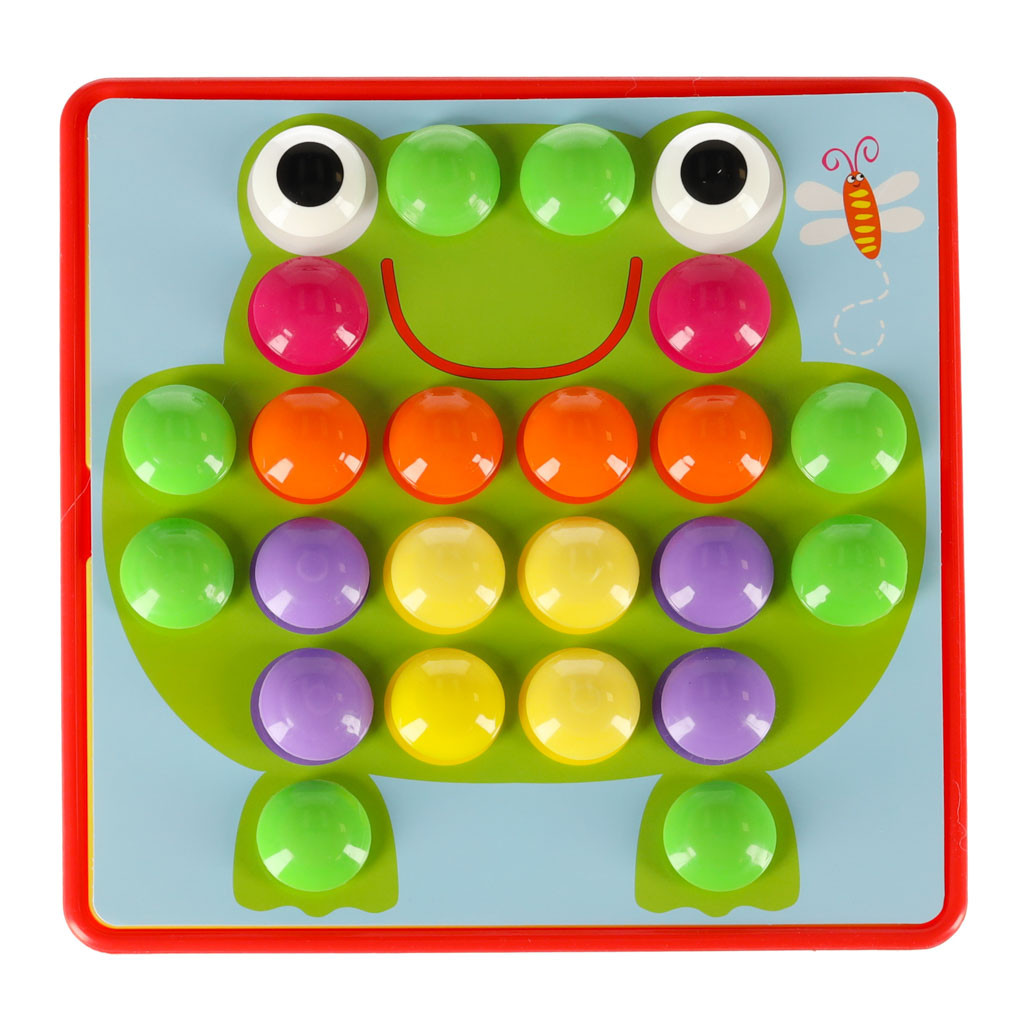 A móka abban rejlik, hogy a gombokat a megfelelő színű lyukakba kell bedugni.
