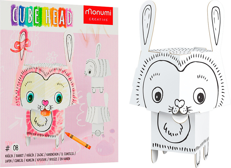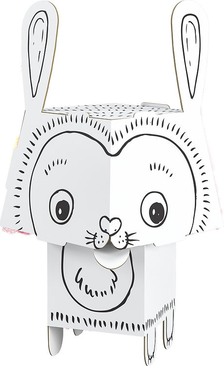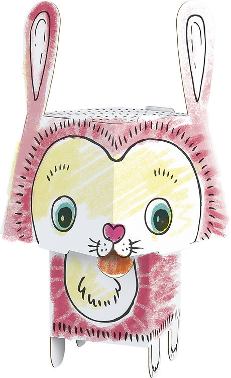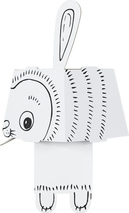 Przestrzenny, mały model zwierzaka z dużą głową do kolorowania. Wykonany z białego kartonu. Precyzyjnie wycięte elementy, łatwe do złożenia bez kleju czy nożyczek. Obrazkowa instrukcja na tyle opakowania.